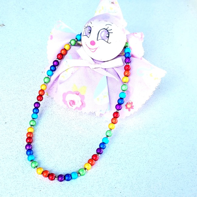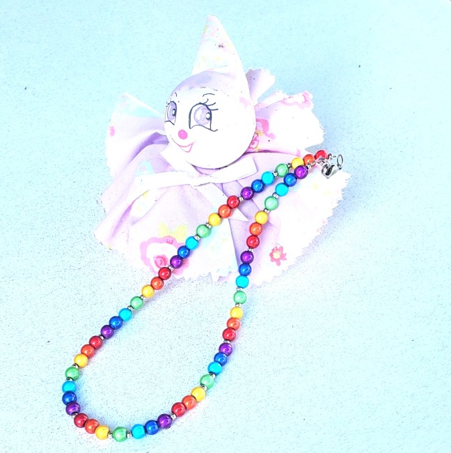 Réalisé en perles magiques 6 mm aux 7 couleurs de l'Arc-en-Ciel correspondant aux couleurs des Chakras