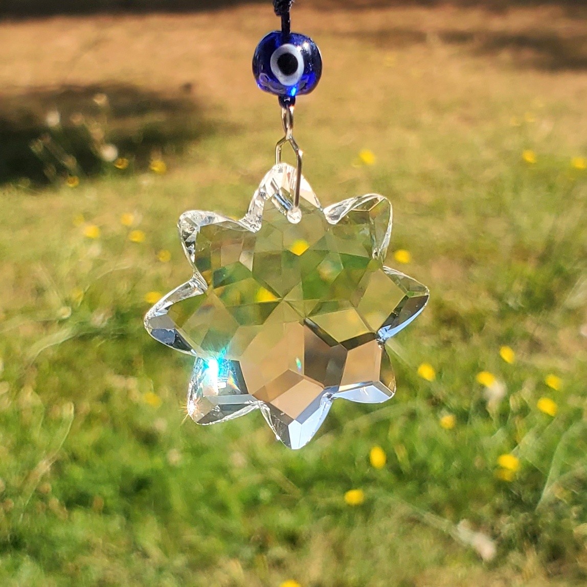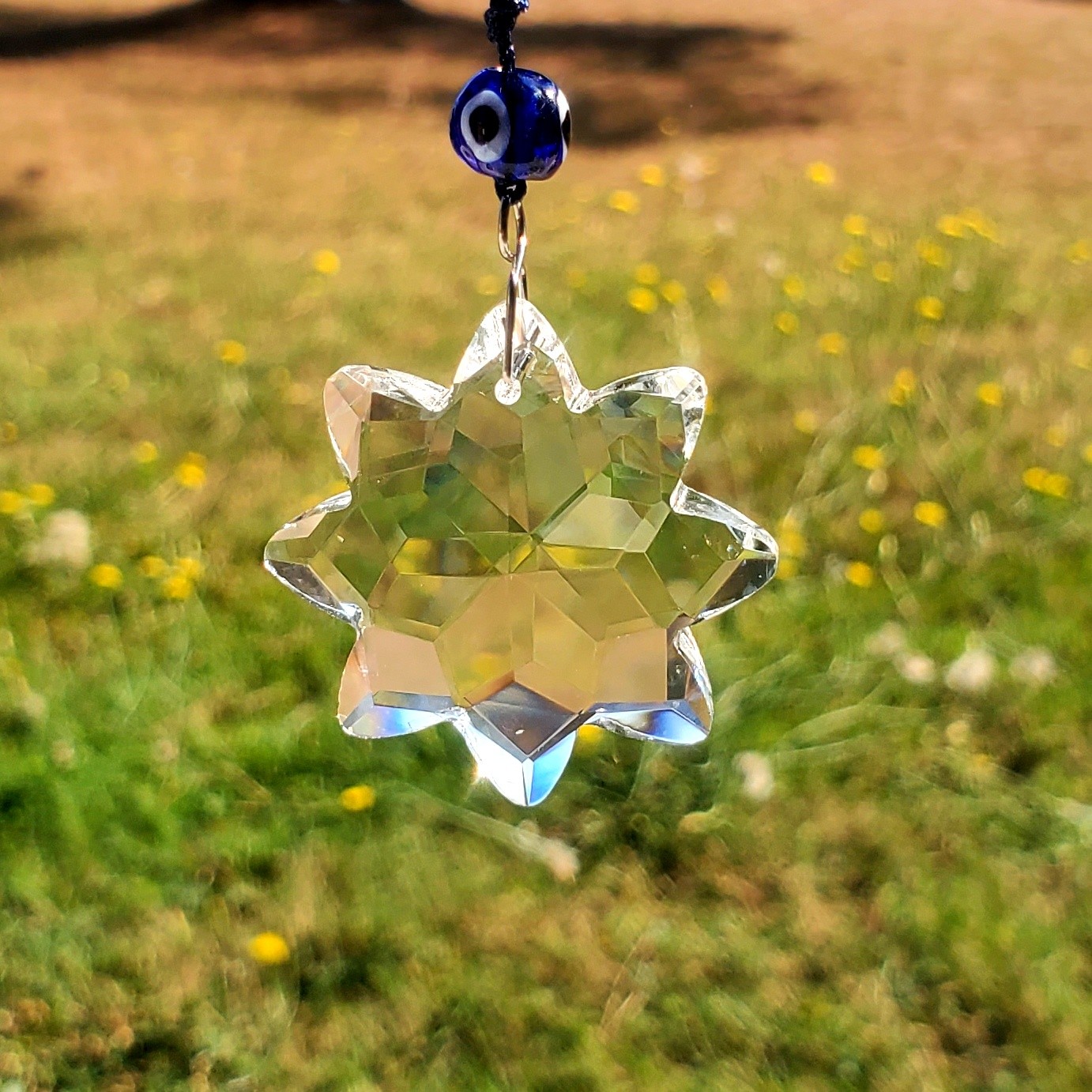 Ce charmant Cristal Etoile peut aussi être accroché à l'intérieur de ta maison, ton bureau, ton commerce pour assurer leur protection et en augmenter les vibrations. Pour sûr tu sauras lui trouver sa place.